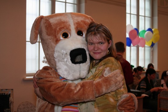 Svētdienas skolu nozares darba vadītāja Ilze Gulbe ar sunīti „Sinepju Graudiņa” atvēršanas svētkos 2007. gada janvārī. Foto: 2007. g.