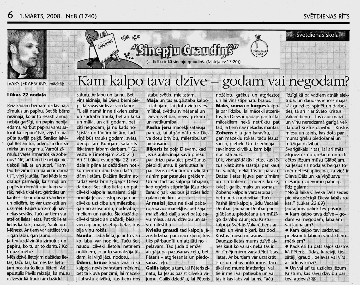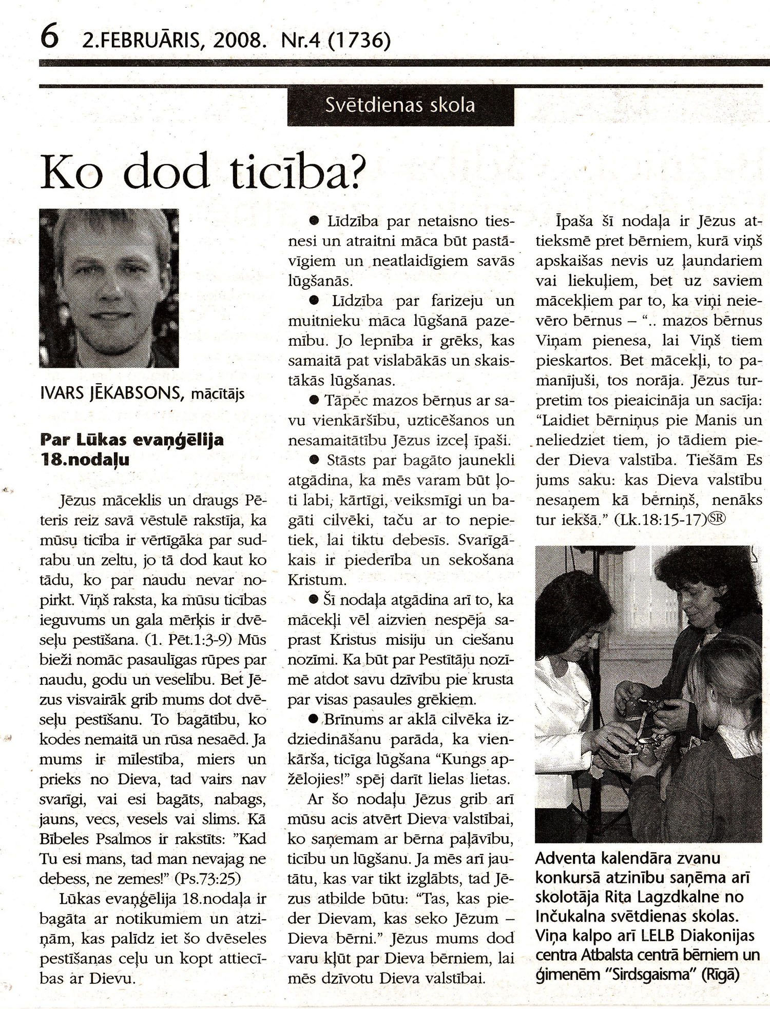 Lūkas 18. nodaļa: Ko dod ticība? Uzdevums.