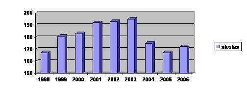 LELB svētdienas skolu skaits no 1998 līdz 2006. gadam (diagramma)